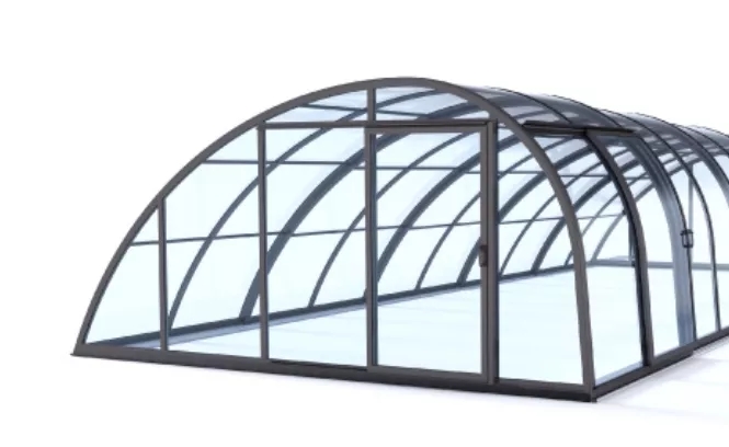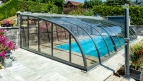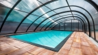 A walk-in high pool enclosure is not only a majestic pool cover but also a space for year-round use. Enjoy an extended swimming season.