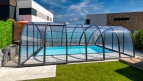 You can choose from several styles of high pool enclosures. If you want to maximize the space under the high enclosure and create a relaxation zone by your pool, CASABLANCA is the perfect choice. For customizable dimensions and configuration, consider the MONACO FUTURE enclosure. If your pool is near a wall, a custom DALLAS wall-mounted enclosure could be the ideal solution. With high pool enclosures, you can also select the color of the frame and the type of its glazing. The MOOVER electric sliding system will make it easier to handle your walk-in pool enclosure.